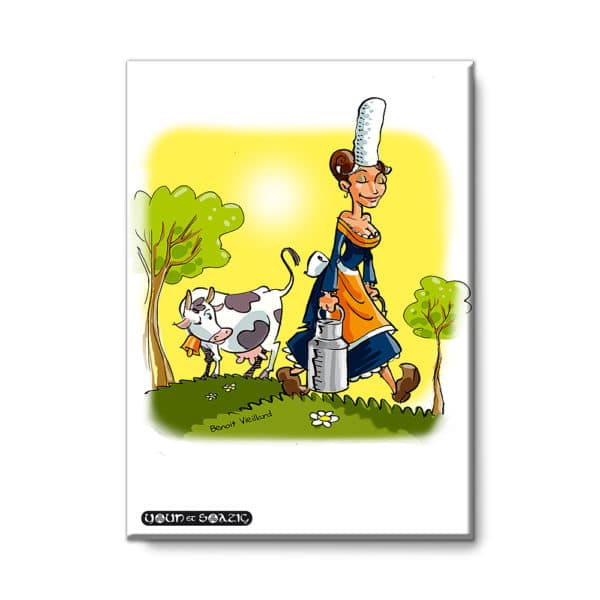 Les magnets Youn et Soazig proposent des illustrations différentes. Chaque magnet raconte une histoire différente et met en scène une bigoudène. Les magnets racontent la vie bretonne quotidienne, de façon humoristique. Ces objets sont colorés et montrent le dynamisme de la bigoudène. Voilà des magnets colorés et originaux qui égayeront donc vos supports métalliques ! Nous proposons aussi des cartes postales, découvrez-les en suivant ce lien.